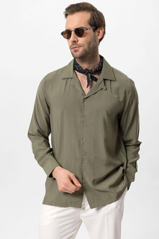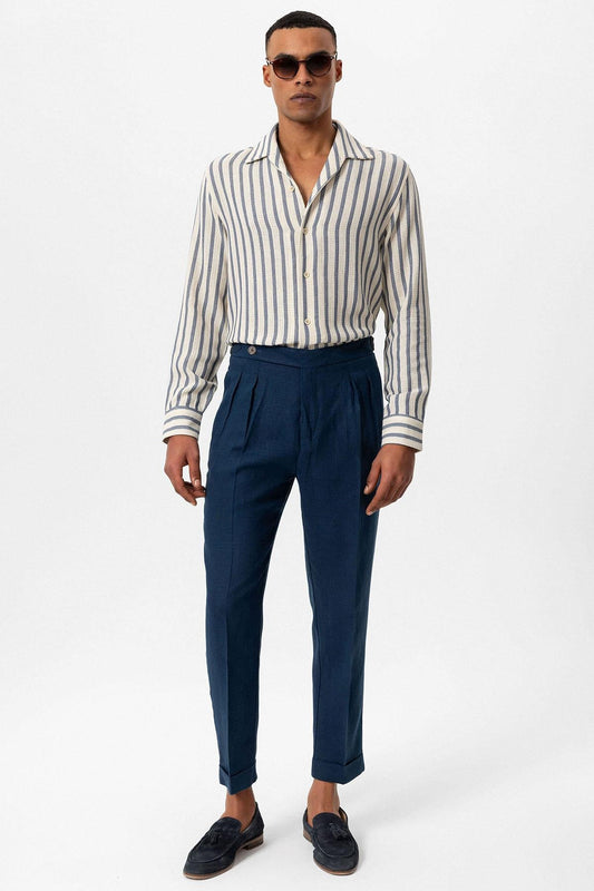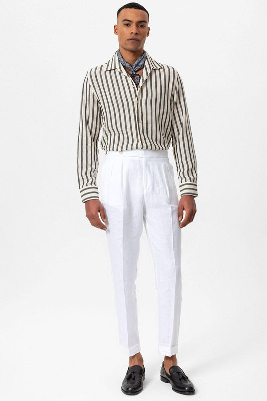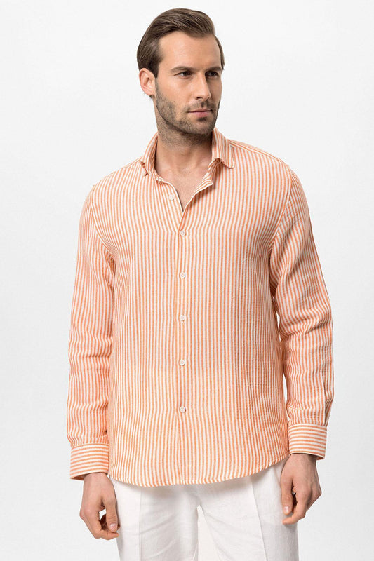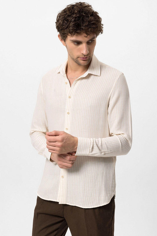Men's Beige Slim Fit Striped Long Sleeve Shirt