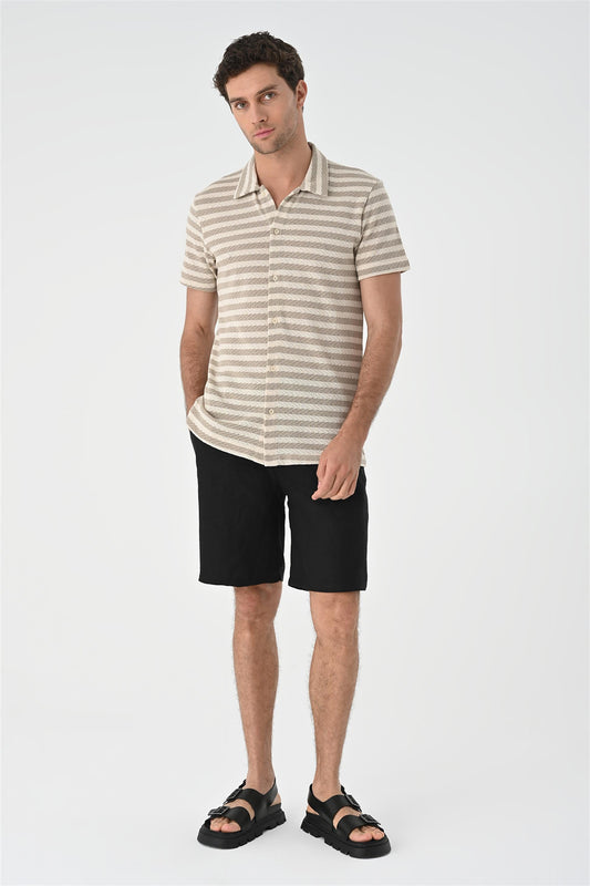 Men's Beige Short Sleeve Striped Knitwear Shirt