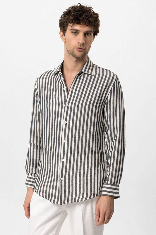 Men's Black Slim Fit Striped Long Sleeve Shirt