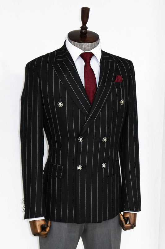 Double Breasted Slim Fit Striped Black Men Blazer and Trousers Combination