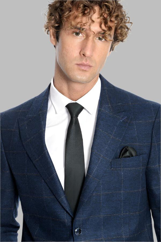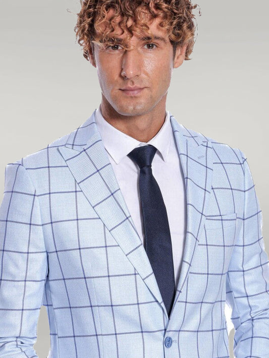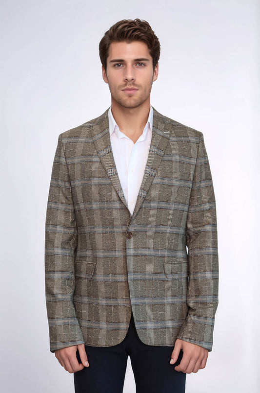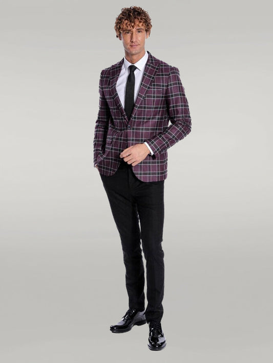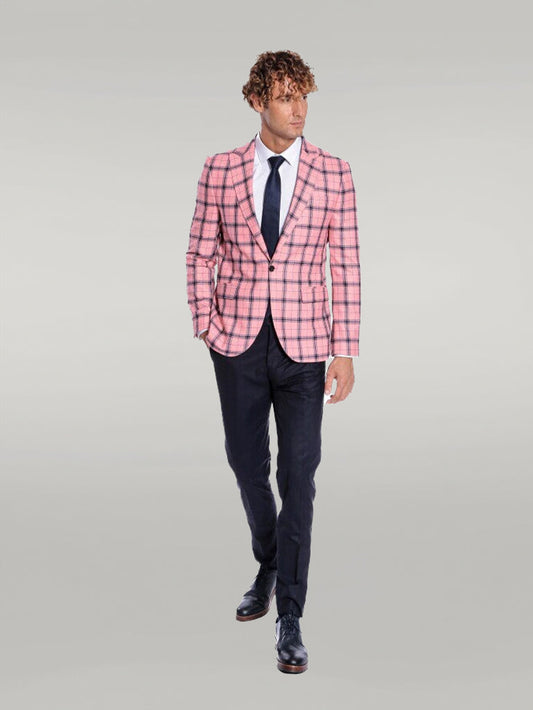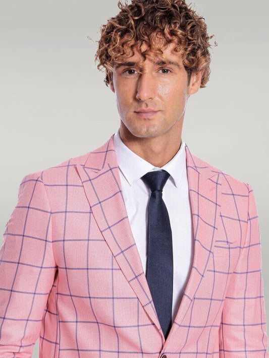 Blue Plaid Patterned Slim Fit Pink Men Blazer