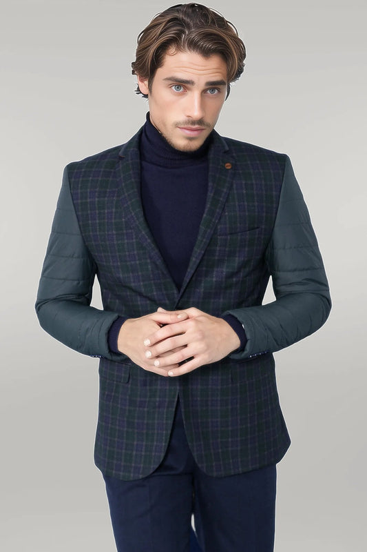 2 Button Arm Quilting Plaid Green Jacket-Wessi