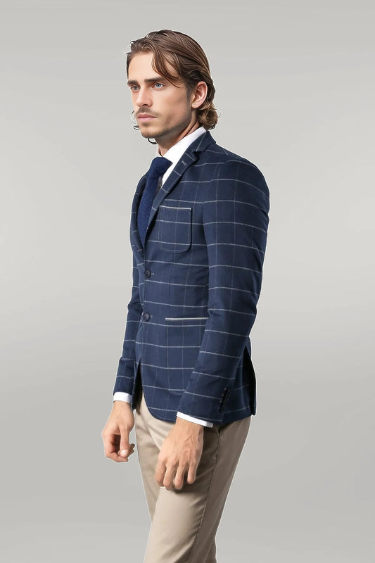 Blue Plaid Patterned Slim Fit Pink Men Blazer