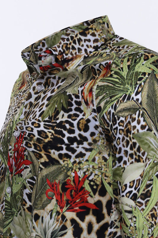 Leopard Pattern Long Sleeves Multicolor Men Shirt