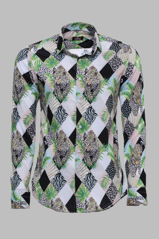 Tiger Patterned Slim Fit Long Sleeves Multicolor Men Shirt