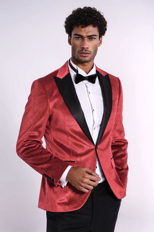 Sparkle Slim Fit Velvet Burgundy Men Prom Blazer and Trousers Combination Suit