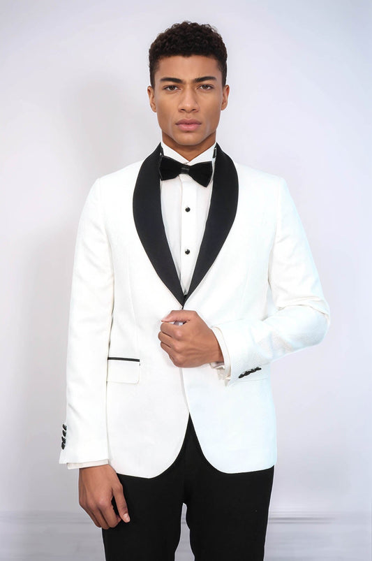 Pentagon Patterned Shawl Lapel White Men Prom Blazer and Trousers Combination Suit