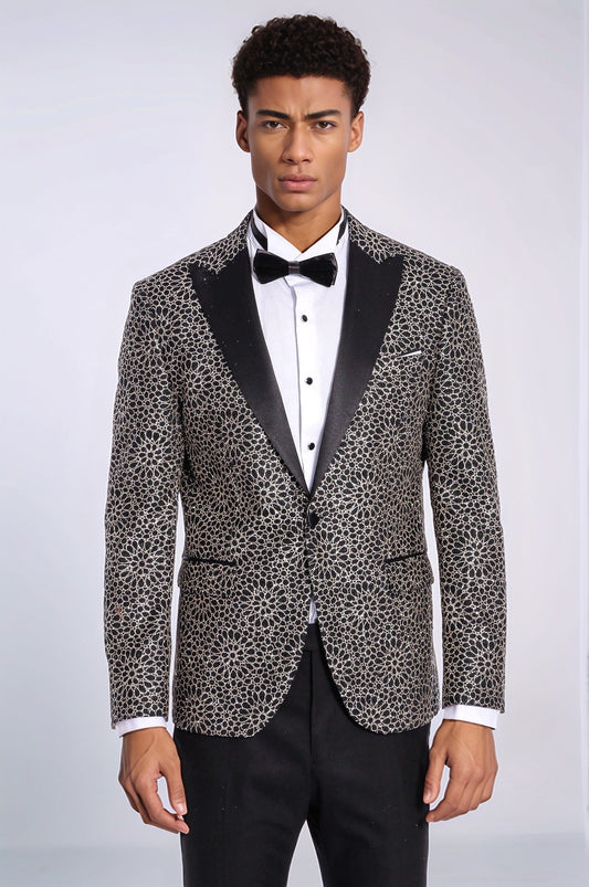 Gold Patterned Over Black Men Evening Dinner Jacket
