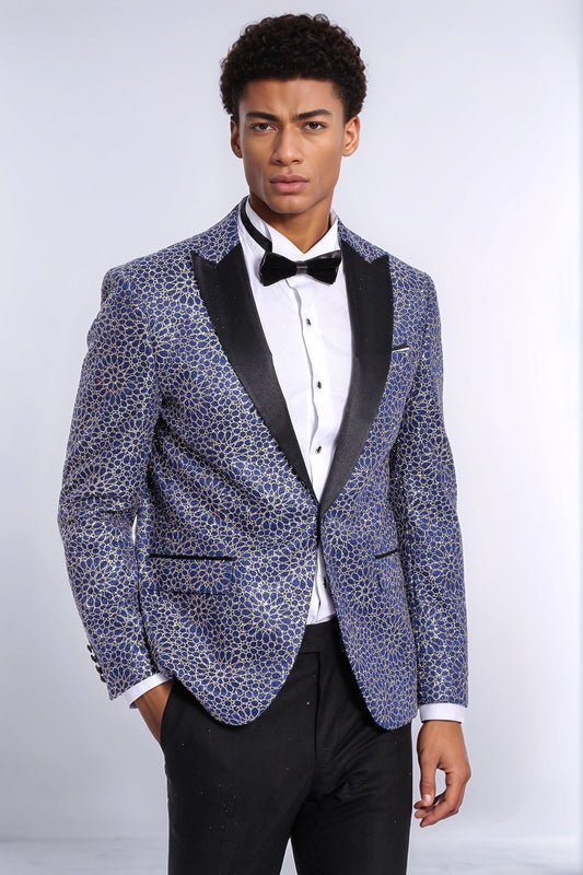 Sparkling Ivy Patterned Slim Fit Blue Men Evening Tuxedo Jacket