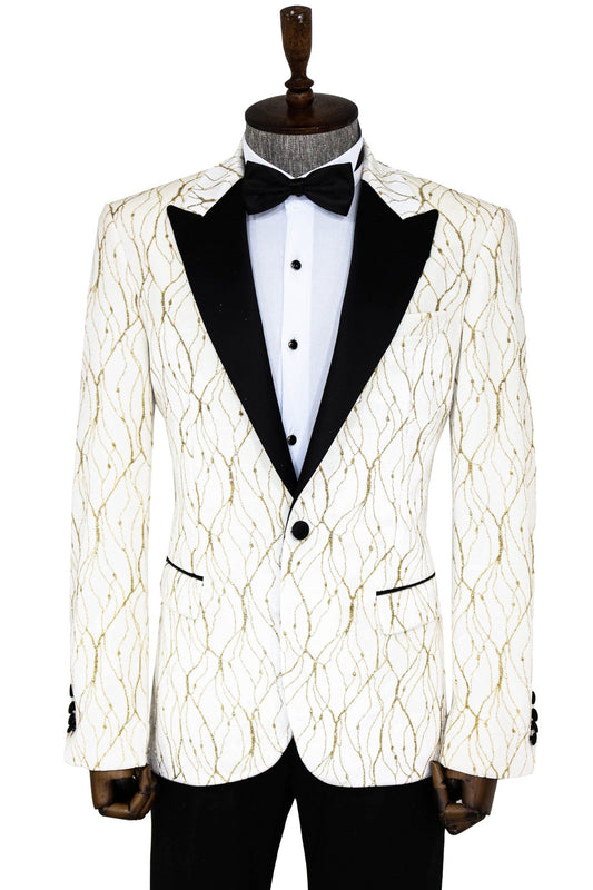 Silver Patterned White Men Wedding Groom Blazer