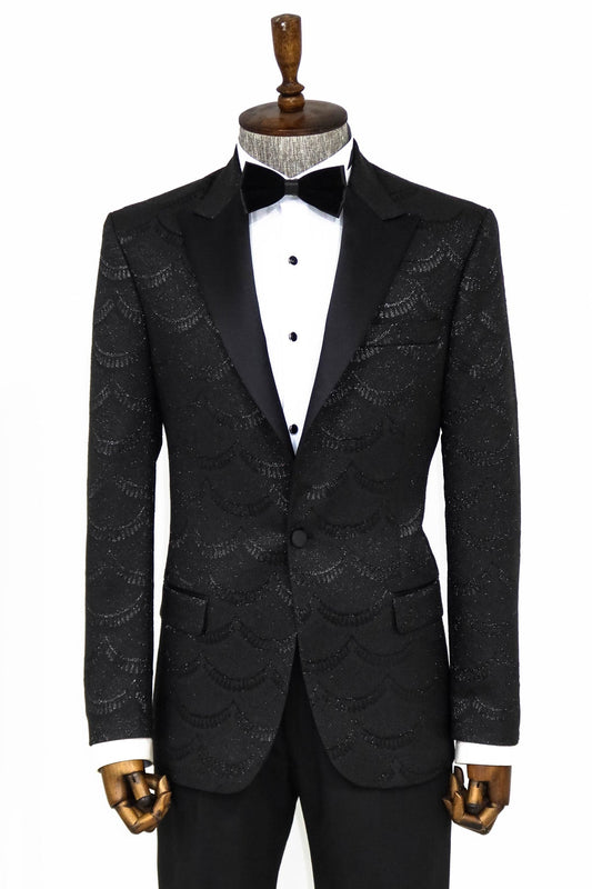 Patterned Slim Fit Black Men Dinner Blazer