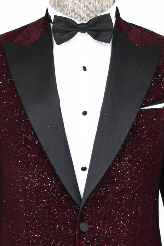 Peak Lapel Slim Fit Gold Patterned Burgundy Men Party Blazer