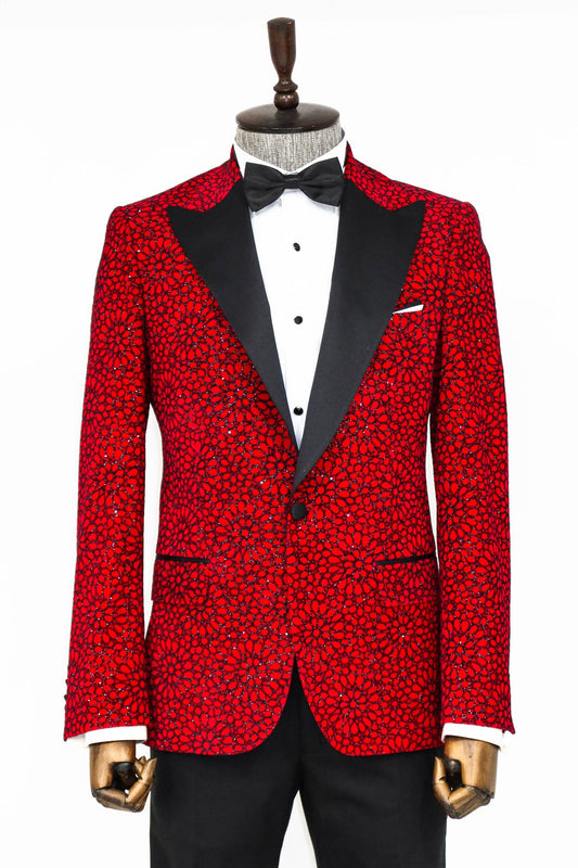Glitter Floral Patterned Burgundy Men Party Blazer