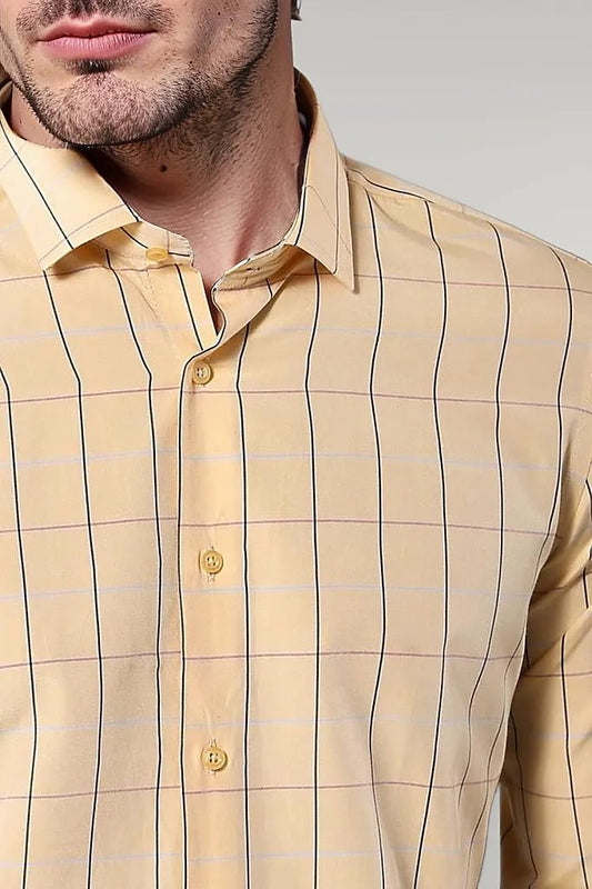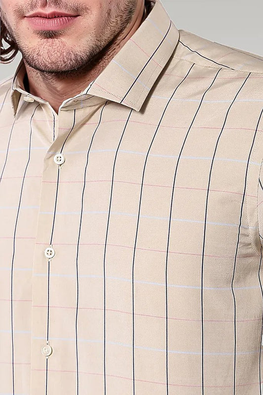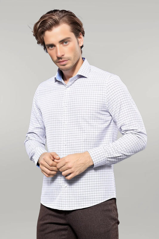 Checked Cotton Slim-Fit Navy Blue Men Shirt -
