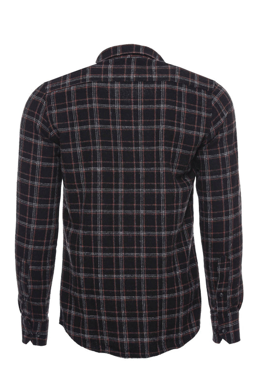 Plaid Slim Fit Black Men Shirt -
