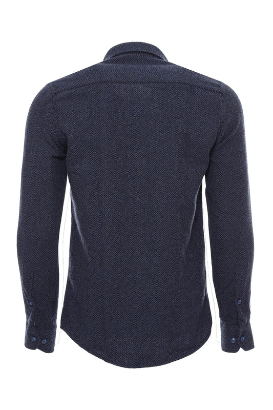Houndstooth Pattern Navy Blue Men Shirt -