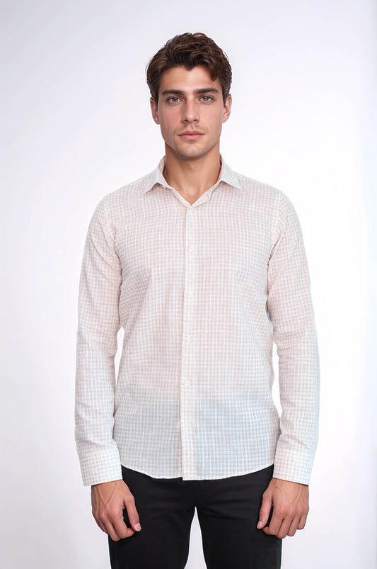 Plaid Slim Fit Light Brown Men Shirt -