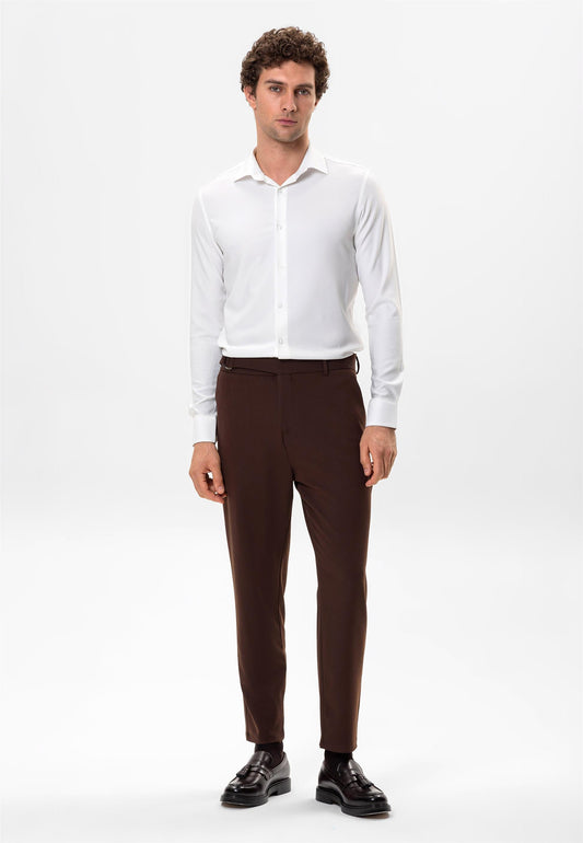 Men's Brown Relax Fit Shawl Collar Short Sleeve Shirt