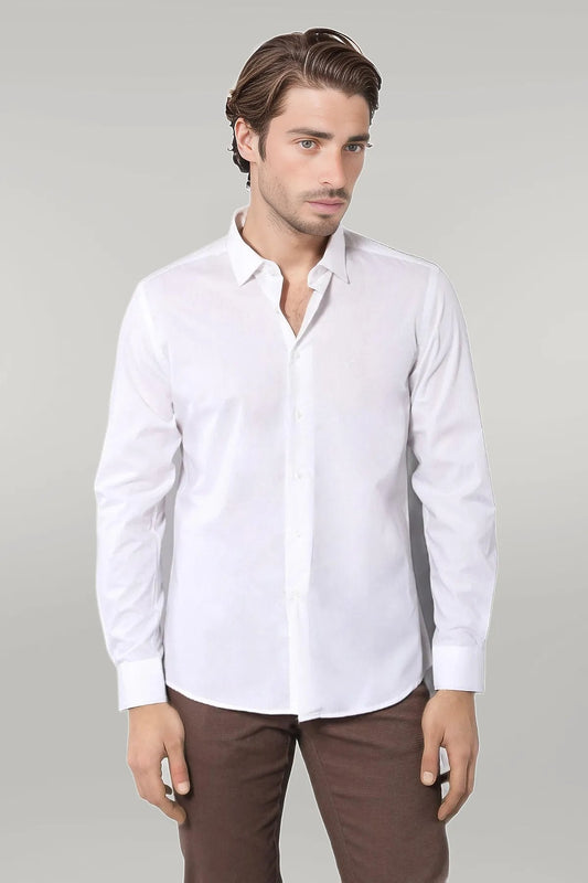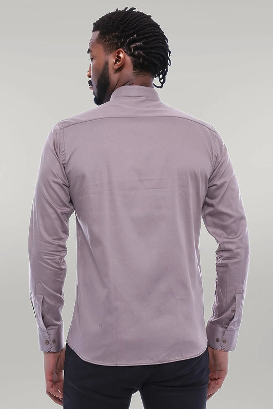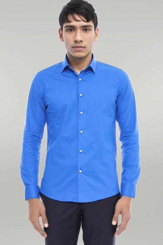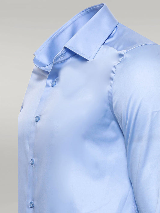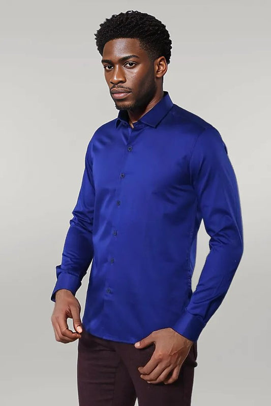 Cotton Satin Slim Fit Long Sleeves Plain Navy Blue Men Shirt -