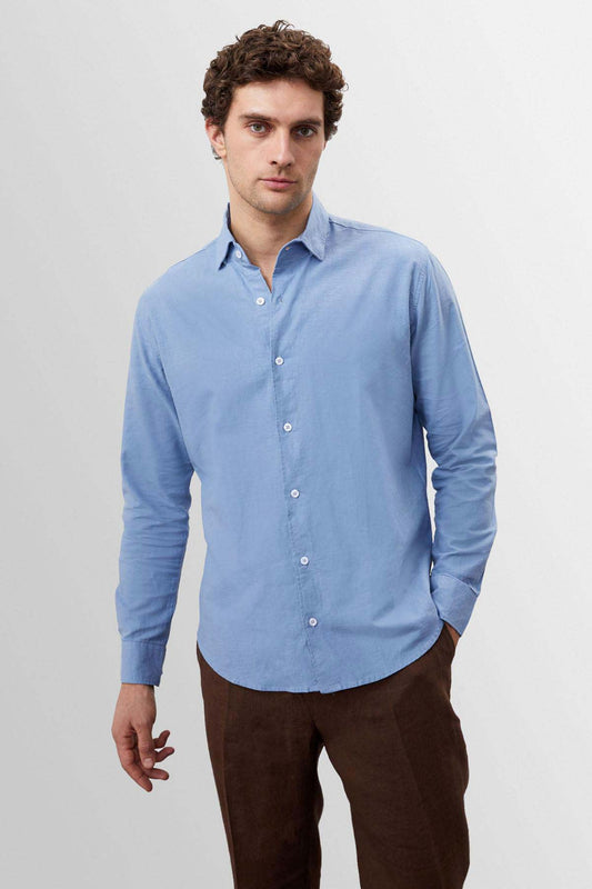 Men's Dark Blue Collar Button Detail 100% Linen Shirt