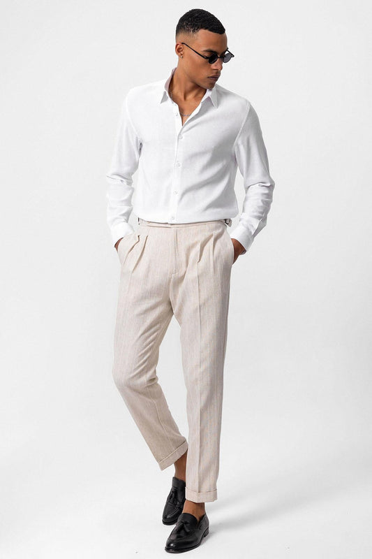 Men's White Long Sleeve Linen Shirt -