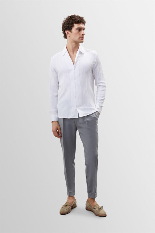 Men's Ecru Knitted Patterned Shirt with Camp Collar -