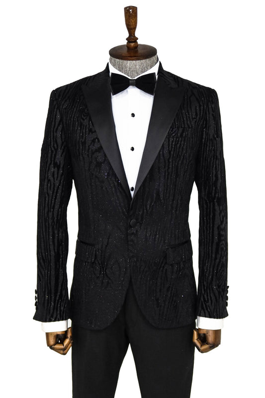 Patterned Shiny White Men Wedding Tuxedo Jacket