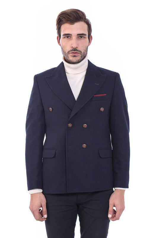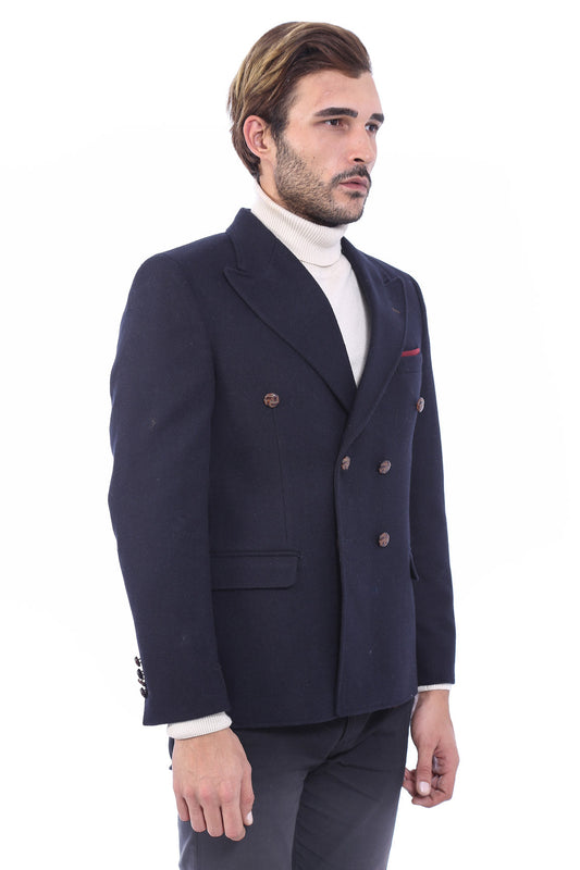 Mens Double Breasted Slim Fit Navy Blue Blazer