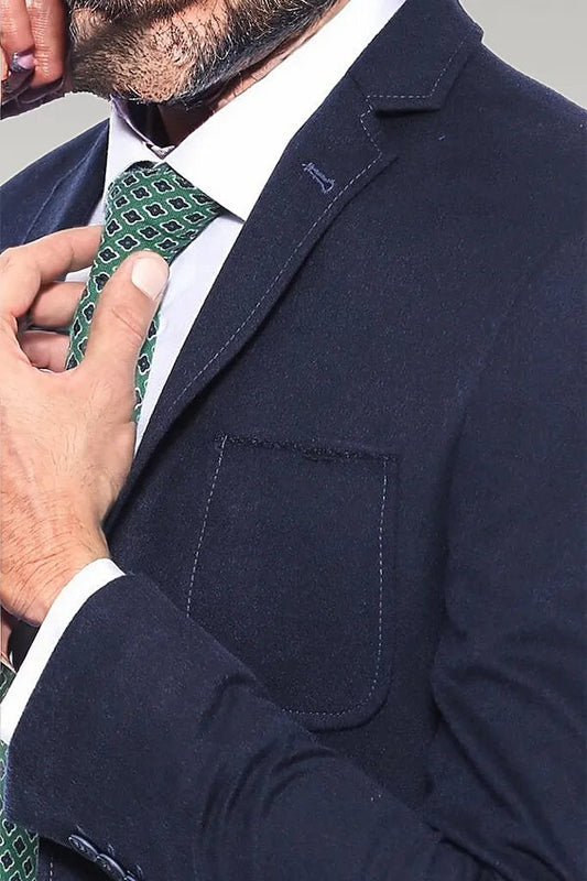 Single Button Double Vent Pointed Collar Navy Blue Blazer
