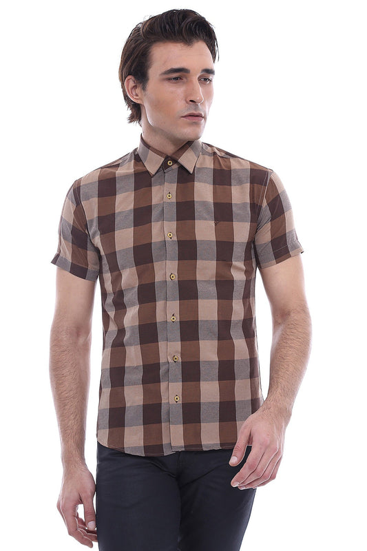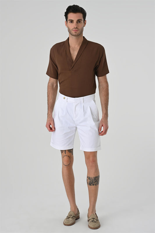 Men's Brown Relax Fit Shawl Collar Short Sleeve Shirt -