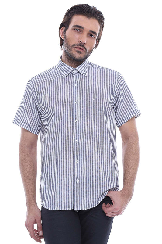 Men's Light Blue Woven Patterned Short Sleeve Shirt -