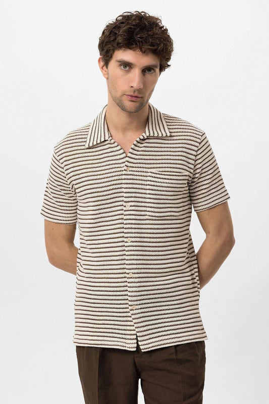 Men's Brown Knit Striped Short Sleeve Shirt -