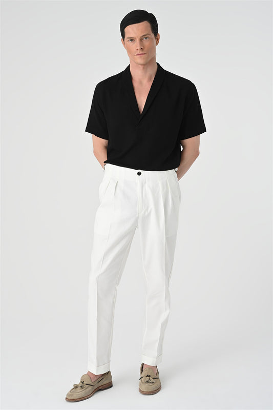 Men's Beige Open Collar Oversized Short Sleeve Shirt