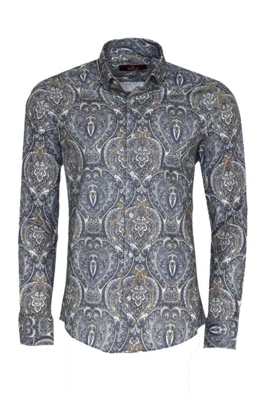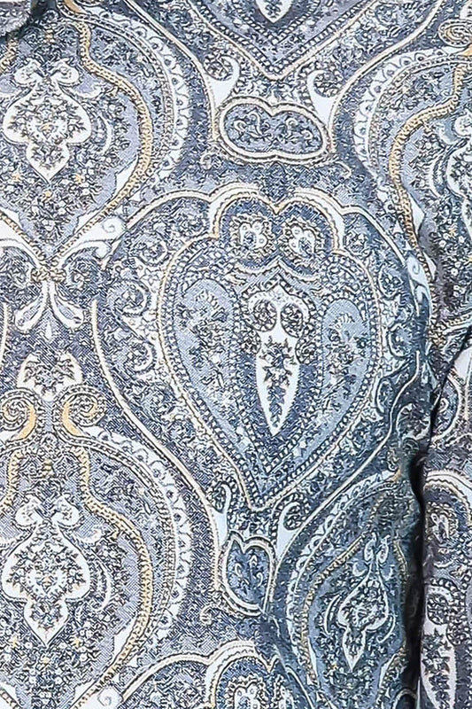 Damask Pattern Blue Slim Fit Shirt -