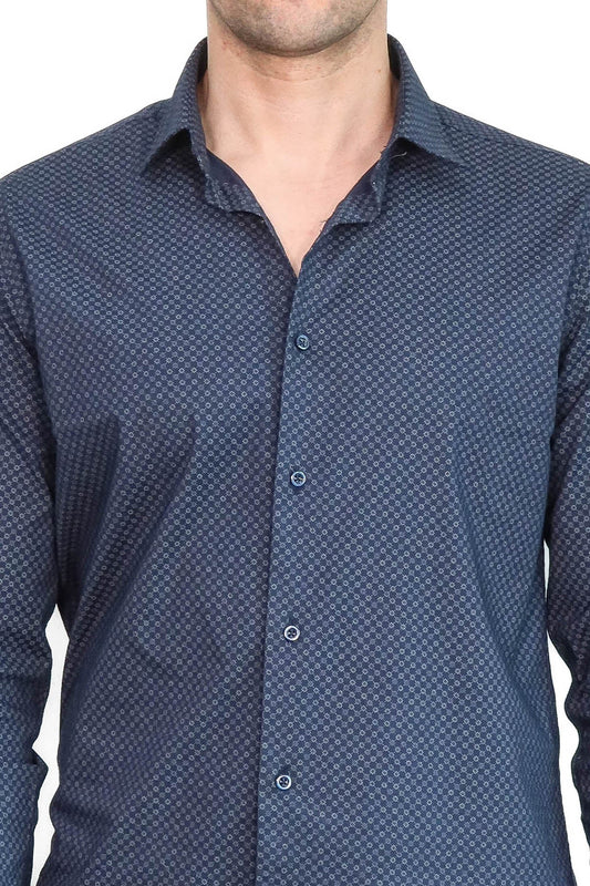 Blue Patterned Slim Fit Shirt