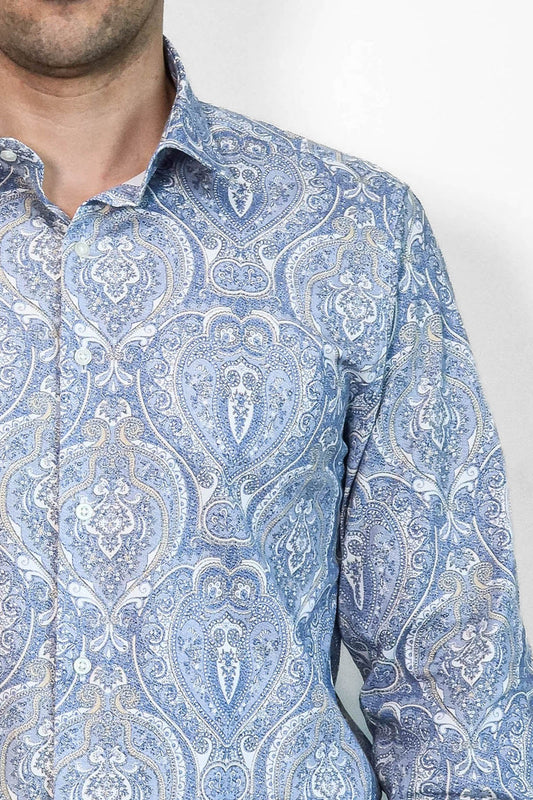 Damask Pattern Blue Slim Fit Shirt
