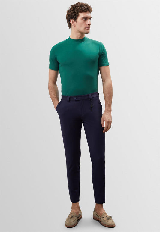 Men's Navy Blue Accessory Detail Slim Fit Trousers
