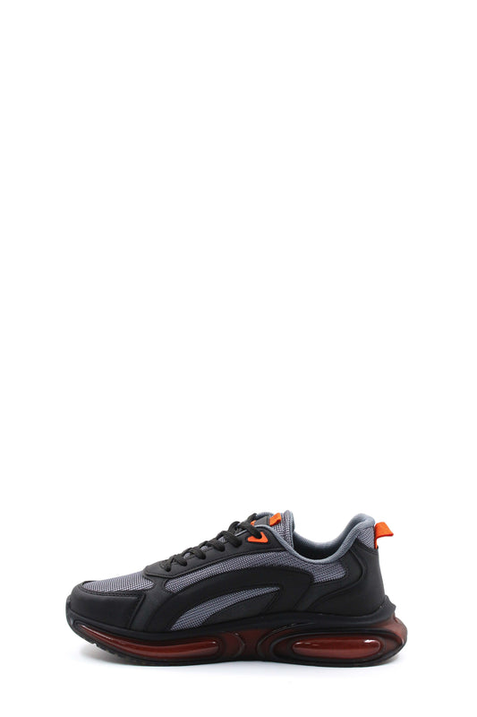 Men's Black and Gray Air Cushion Sneakers with Orange Accents