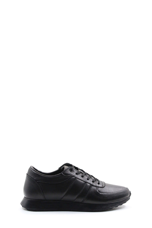 Men's Black Leather Sneakers with Subtle Stitch Detailing