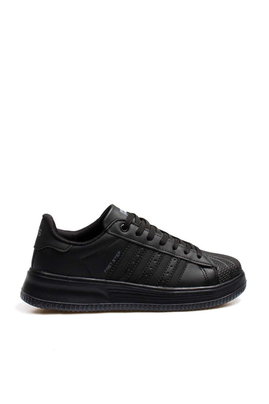 Men's All-Black Leather Low-Top Sneakers with Textured Toe