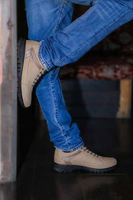 Men's Beige Suede Casual Sneakers with Red Sole-Wessi