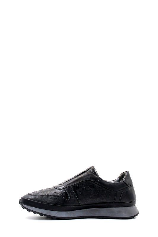 Men's Black Leather Slip-On Sneakers-Wessi