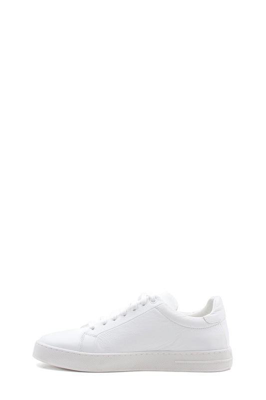Men's White Leather Lace-Up Sneakers with Grey Sole