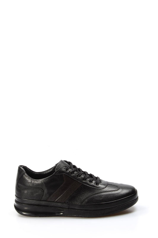 Men's Black Leather Sneakers with Lace-Up Closure and Textured Sole