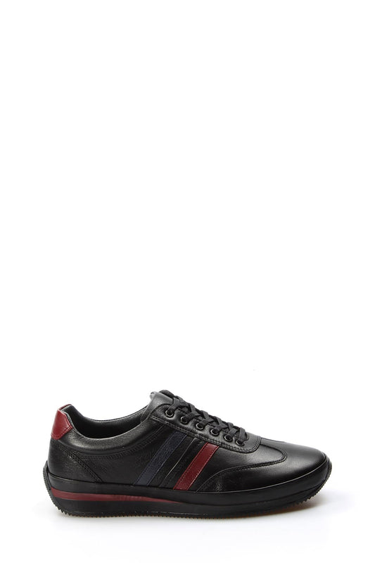 Men's Black Leather Sneakers with Red and Navy Stripes