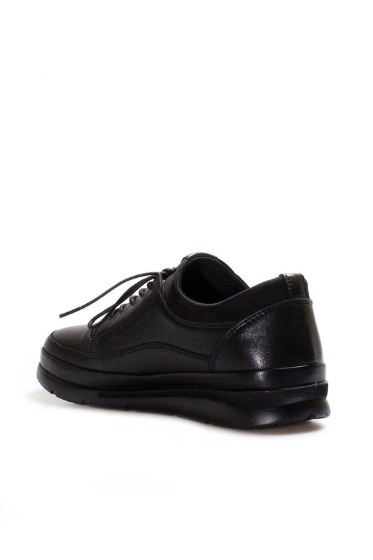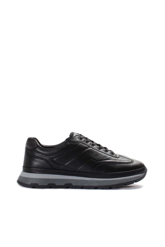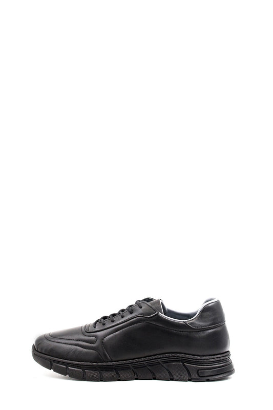 Men's Black Leather Comfort Sneakers with Cushioned Sole