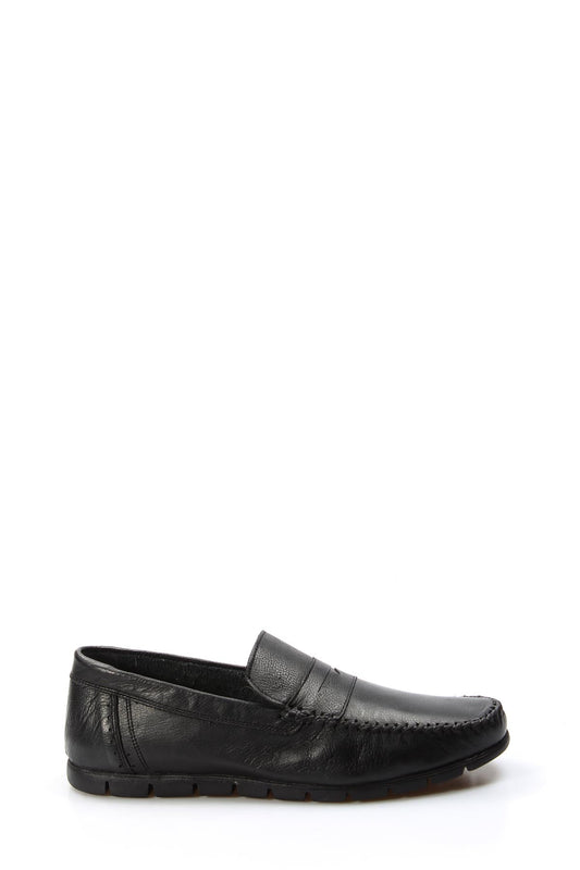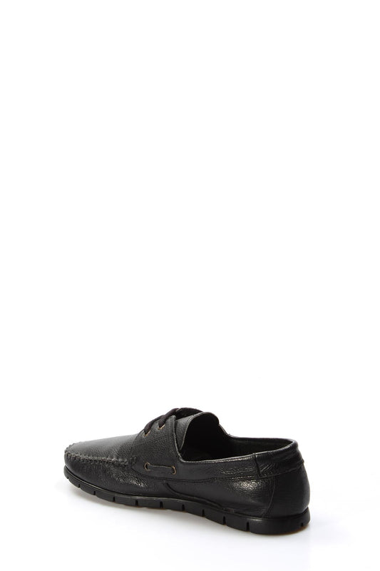 Men's Black Leather Moccasin Loafers with Lace-Up Detail