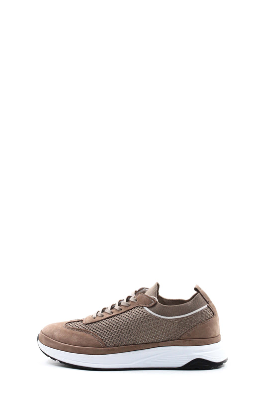 Men's Beige Suede and Mesh Lace-Up Sneakers