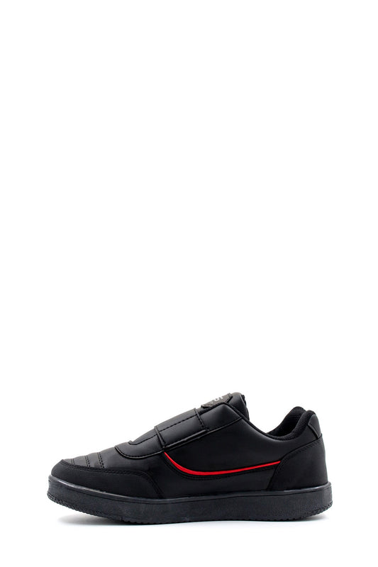 Men's Black Leather Sneakers with Color Stripe and Gum Sole