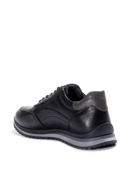 Men's Black Leather Casual Sneakers with Grey Sole and Fur Lining